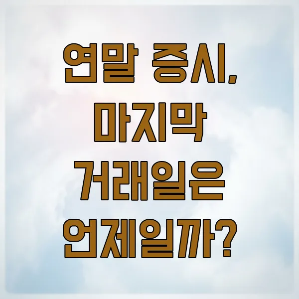 Q1: 올해 주식시장 마지막 거래일은 정확히 언제인가요? A1: 한국거래소(KRX)에서 매년 발표하는 공식 휴장일 안내를 확인해야 가장 정확합니다. 보통 12월 30일 이전의 평일이 마지막 거래일이 됩니다.